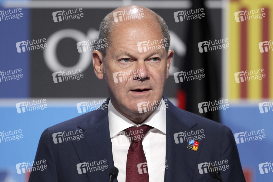 Olaf Scholz bei einer Pressekonferenz zum Abschluss des Nato-Gipfels im IFEMA Congress Center. Das nordatlantische Bündnis hat das strategische Konzept 2022 verabschiedet. Die Kernaufgaben bleiben. Russland ist die größte Bedrohung für die NATO und China spielt nun eine größere Rolle in der sicherheitspolitischen Betrachtung. Das neue strategische Konzept ist ein Signal der transatlantischen Geschlossenheit. Madrid, 30.06..2022