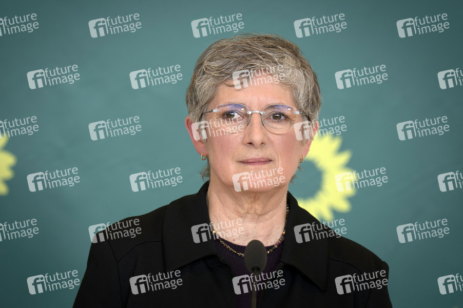 Britta Haßelmann beim Pressestatement der Bündnis 90/Die Grünen-Bundestagsfraktion im Reichstagsgebäude. Berlin, 13.03.2025