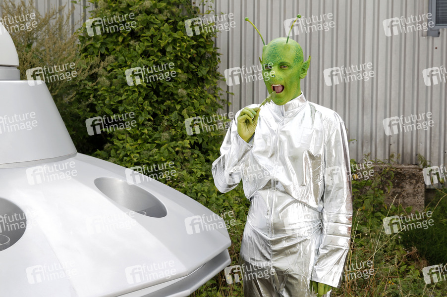 Bodypainting, Body-Painting, Cosplay, Cosplayer, Körperkunst, Körperfarben, Farbe, Bemalung, Kunst, Make-up, Latexapplikationen, Maskenbildnerei, unbekanntes Flugobjekt, Außerirdische, fliegende Untertasse, Raumschiff, fremde Wesen, Landung, Invasion, Science Fiction, body painting, body art, latex applications, unknown flying object, spacecraft, flying saucer, alien, strangers, landing, colors