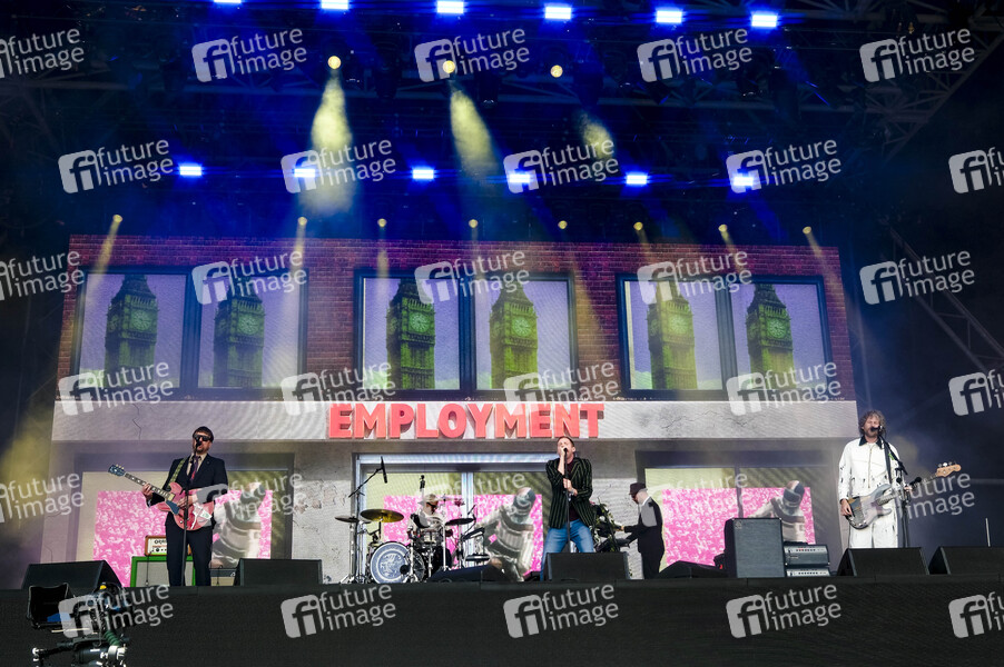 Andrew 'Whitey' White, Vijay Mistry, Ricky Wilson, Nick 'Peanut' Baines und Simon Rix von den Kaiser Chiefs live auf dem Glastonbury Festival 2025 auf der Worthy Farm. Pilton, 28.06.2025