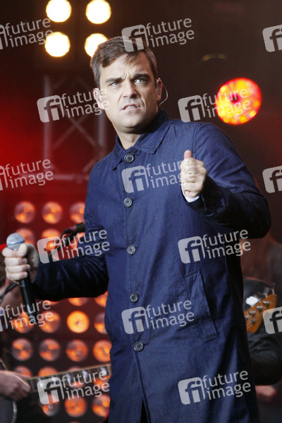 Robbie Williams Gratiskonzert zur Vorstellung seiner CD 'Reality Killed the Video Star' am Falkplatz vor der Max-Schmeling-Halle in Berlin