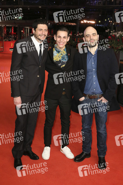 Claudio Giovannesi, Francesco Di Napoli und Roberto Saviano bei der Premiere von 'Piranhas / La paranza dei bambini' auf der Berlinale 2019 / 69. Internationale Filmfestspiele Berlin im Berlinale Palast. Berlin, 12.02.2019