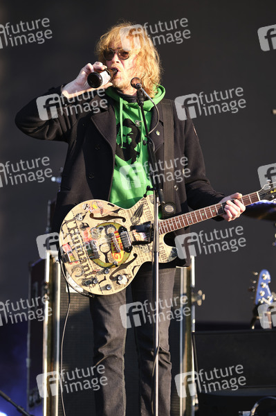 Christof Stein-Schneider von Fury in the Slaughterhouse live beim Autokultur-Konzert auf dem Schützenplatz. Die Besucher verfolgen unter Berücksichtigung klarer Hygiene-Vorschriften während der Corona-Krise den Auftritt aus dem Auto. Hannover, 14.05.2020