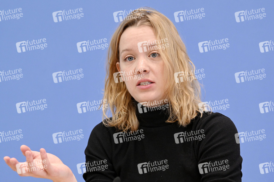 Carla Reemtsma bei der Bundespressekonferenz Kürzungen abwenden, Zukunftsinvestitionen sicherstellen: Für einen Kurswechsel in der Finanz- und Haushaltspolitik im Haus der Bundespressekonferenz. Berlin, 11.04.2024