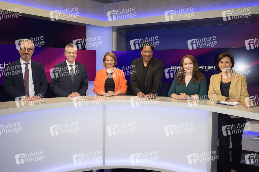 Jan Fleischhauer, Cherno Jobatey, Helene Bubrowski, Thorsten Frei, Ricarda Lang und Sandra Maischberger in der ARD-Talkshow 'maischberger' im Studio Berlin Adlershof. Berlin, 27.05.2025