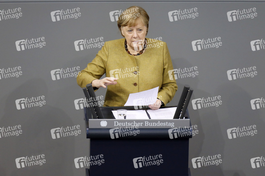 Angela Merkel in der 209. Sitzung des Deutschen Bundestages im Reichstagsgebäude. Berlin, 11.02.2021