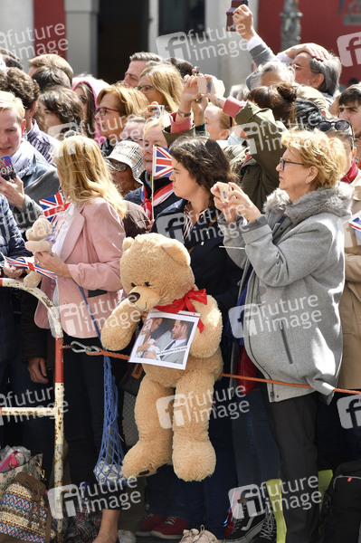 Schauslustige und Fans bei der Begrüßung der britischen Royals auf dem Max-Joseph-Platz vor der Residenz München. München, 09.05.2019