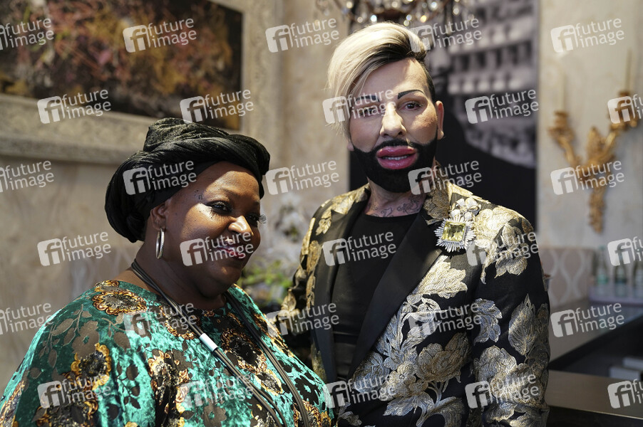 Dynelle Rhodes und Harald Glööckler beim Pre-Opening des ersten Café Pompöös im Kurpark. Bad Dürkheim, 28.08.2019