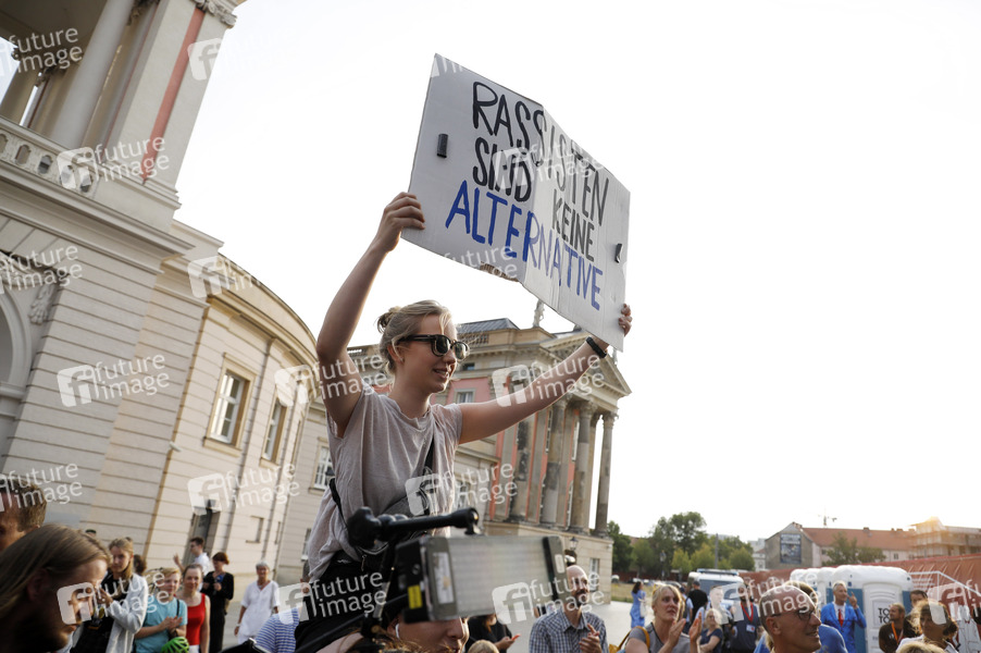 Demonstrantin vor dem Landtag nach der Landtagswahl in Brandenburg. Potsdam, 01.09.2019