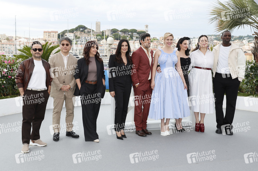 Juan Antonio Bayona, Hirokazu Kore-eda, Ebru Ceylan, Nadine Labaki, Pierfrancesco Favino, Greta Gerwig, Eva Green, Lily Gladstone und Omar Sy beim Photocall der internationalen Jury auf dem Festival de Cannes 2024 / 77. Internationale Filmfestspiele von Cannes am Palais des Festivals. Cannes, 14.05.2024