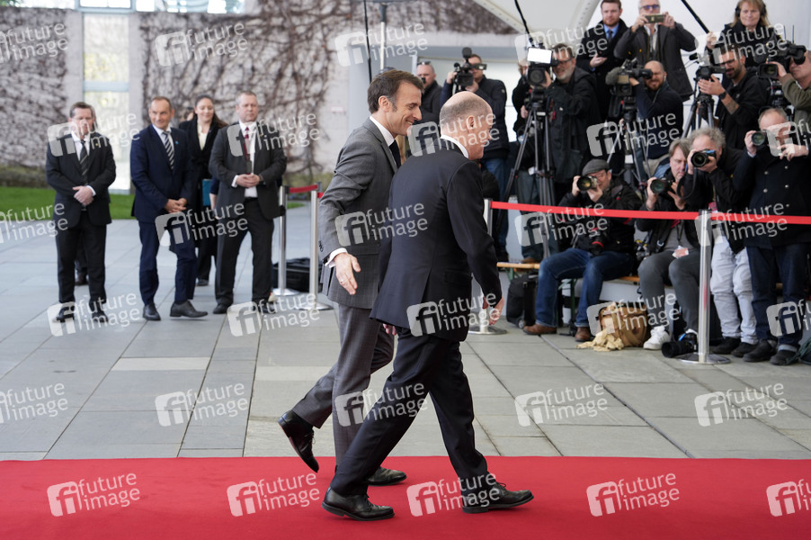 Emmanuel Macron und Olaf Scholz beim Empfang des Staatspräsidenten der Französischen Republik zu einem gemeinsamen Gespräch im Bundeskanzleramt. Berlin, 15.03.2024