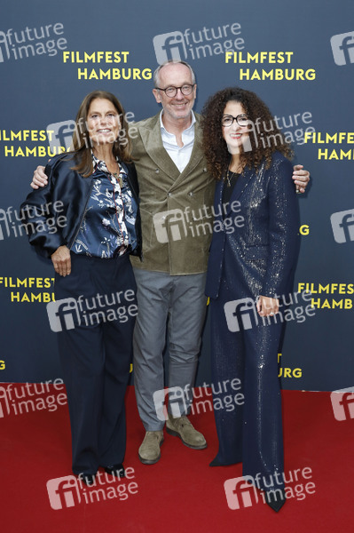 Sarah Wiener, Henning Riecken und Malika Rabahallah bei der Festivaleröffnung mit der Premiere des Kinofilms 'Lovely Day / Mille secrets, mille dangers' auf dem 33. Filmfest Hamburg 2025 im Cinemaxx Dammtor. Hamburg, 25.09.2025