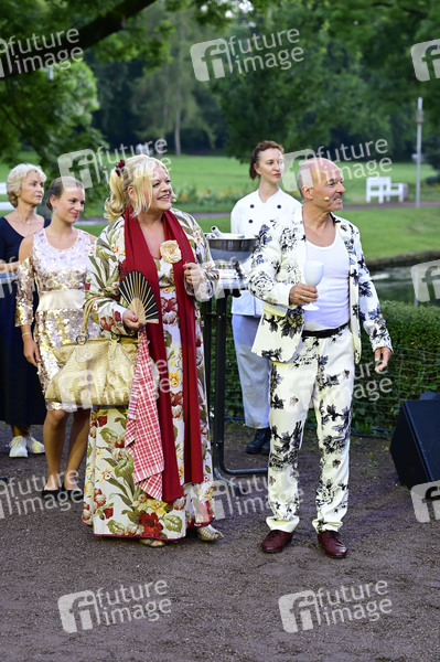 Tine Wittler und Sven Schenke bei der Generalprobe zum Theaterstück 'Jedermann' am Pavillon im Weimarhallenpark. Weimar, 10.07.2024