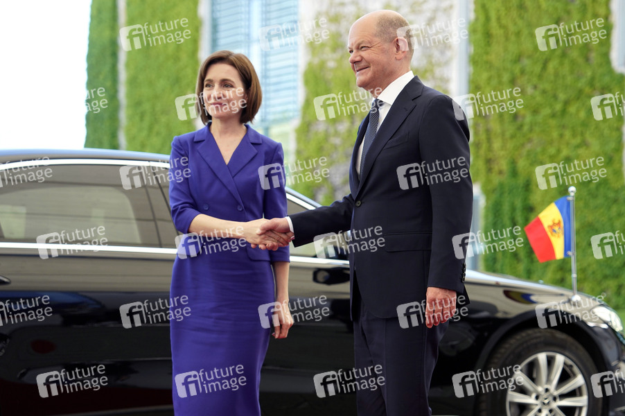 Maia Sandu und Olaf Scholz beim Empfang der Präsidentin der Republik Moldau zu einem gemeinsamen Gespräch mit anschließendem Pressestatement im Bundeskanzleramt. Berlin, 17.05.2024