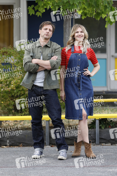Hendrik Duryn und Zsa Zsa Inci Bürkle beim Fototermin am Set der 8. Staffel der RTL TV-Serie 'Der Lehrer' im Hackhauser Weg 77. Köln, 06.08.2019