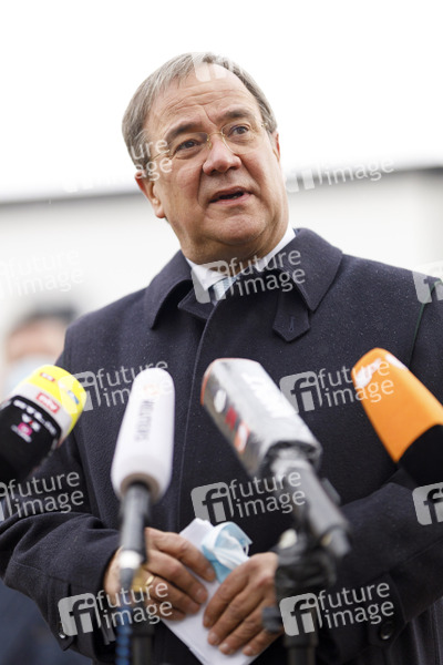 Armin Laschet bei enem Pressestatement vor dem Universitätsklinikum Düsseldorf. In Rekordzeit hat das UKD eine räumlich vollständig getrennte Neubau-Einheit zur Versorgung von COVID-19-Patienten erbaut. Das Gebäude bietet 18 Intermediate-Care-Plätze und 25 Intensivplätze. Damit verfügt das Universitätsklinikum über eine der modernsten Intensiveinheiten Europas. Düsseldorf, 30.12.2020