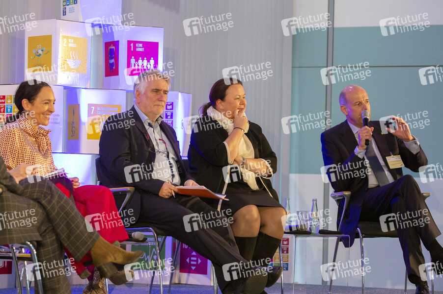 Andrea Thilo, Rudi Bertram, Ursula Heinen-Esser und Hans-Dietrich Reckhaus bei der Nachhaltigkeitskonferenz zur Fortschreibung der Deutschen Nachhaltigkeitsstrategie im Gustav-Stresemann-Institut. Bonn, 19.02.2020