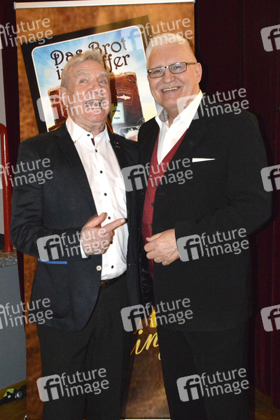 Siegfried Trzoß und Detlef Heising bei der Buchvorstellung 'Das Brot im Koffer' von Detlef Heising in der Studiobühne im Freizeitforum Marzahn. Berlin, 17.03.2019
