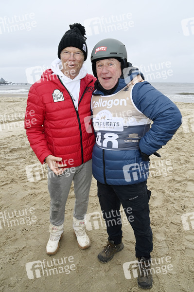 Wolfgang Lippert und Jörg Schüttauf beim 9. Baltic Lights 2025 Charity-Schlittenhunderennen zu Gunsten der Welthungerhilfe zwischen der Seebrücke Ahlbeck und der Seebrücke Heringsdorf. Heringsdorf, 01.03.2025