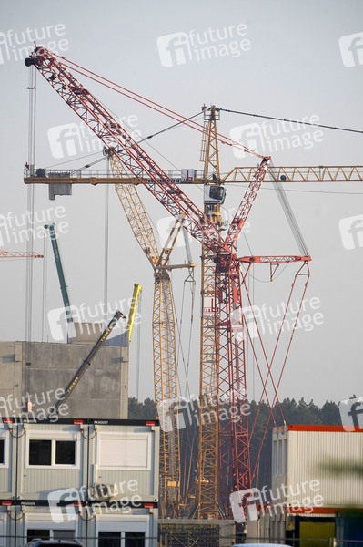 Tesla, Elektroauto, Elektrofahrzeuge, PKW, Auto, Model Y, Model 3, Großfabrik, Automobilhersteller, Autobauer, Elektromobilität, umweltfreundlich, Baustelle, Bauen, Baubranche, Bau-Branche, Bauarbeiter, Bauarbeiten, Großbaustelle, Kran, Kräne, Baustelle