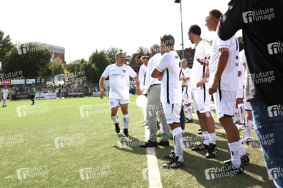Elton und Felix Magath mit ihrer Mannschaft beim Benefiz-Fußballspiel 'Kicken mit Herz' 2022 zu Gunsten des Herzzentrums des UKE im Stadium des SC Victoria. Hamburg, 04.09.2022