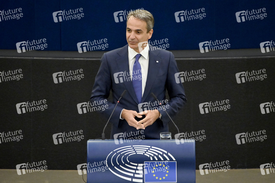 Kyriakos Mitsotakis spricht vor dem Parlament im Plenarsaal des Europäischen Parlaments. Straßburg, 05.07.2022