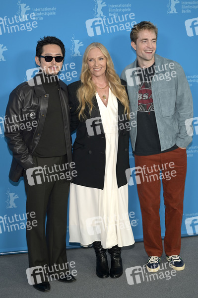 Steven Yeun, Toni Collette und Robert Pattinson beim Photocall zum Kinofilm 'Mickey 17' auf der Berlinale 2025 / 75. Internationale Filmfestspiele Berlin im Hotel Grand Hyatt. Berlin, 15.02.2025
