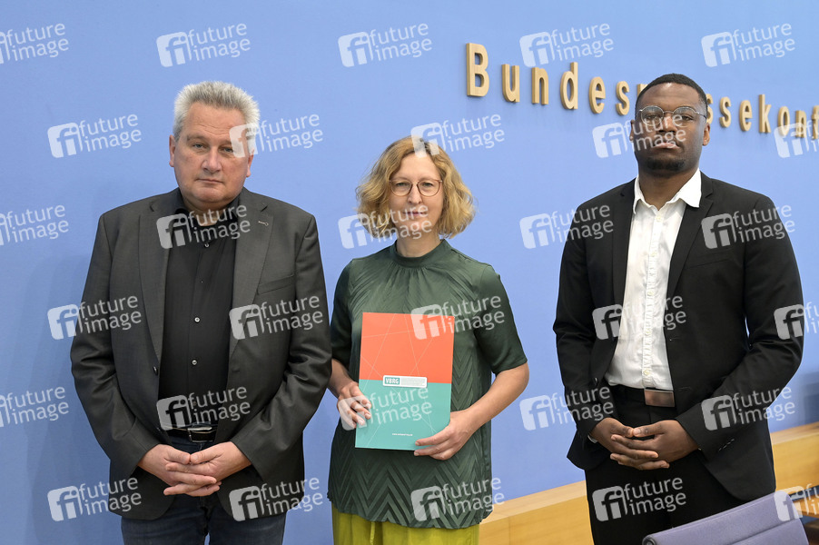 BPK, Bundespressekonferenz, Pressekonferenz, PK, Politik, Leiter der Stiftung Gedenkstätten Buchenwald und Mittelbau-Dora, Vorstandsmitglied Verband der Beratungsstellen für Betroffene rechter, rassistischer und antisemitischer Gewalt (VBRG e.V.), Geschäftsführerin Opferperspektive Brandenburg e.V., Student der Wirtschaftswissenschaften aus Sachsen
