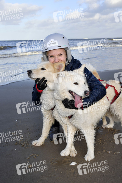 Schauspielerin, Prominenz, Celebrity, Celebrities, Tier, Hund, Hunde, Huskys, Husky, Unterhaltung, Entertainment, Schlittenhunderennen, Ostsee, Sport