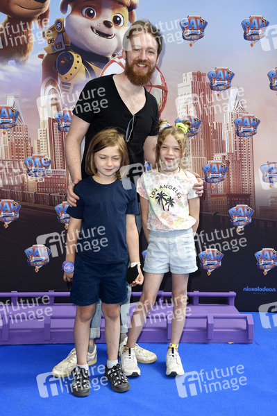 Tino Mewes mit den Kindern Nevi und Lia bei der Premiere des Kinofilms 'Paw Patrol - Der Kinofilm / PAW Patrol: The Movie' im Kino in der Kulturbrauerei. Berlin, 15.08.2021