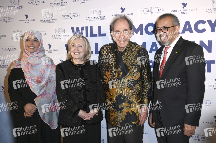 Tawakkol Karman, Hillary Clinton, Albie Sachs und Tedros Adhanom Ghebreyesus bei der Cinema For Peace Gala 2026 im Hotel Adlon Kempinski. Berlin, 16.02.2026