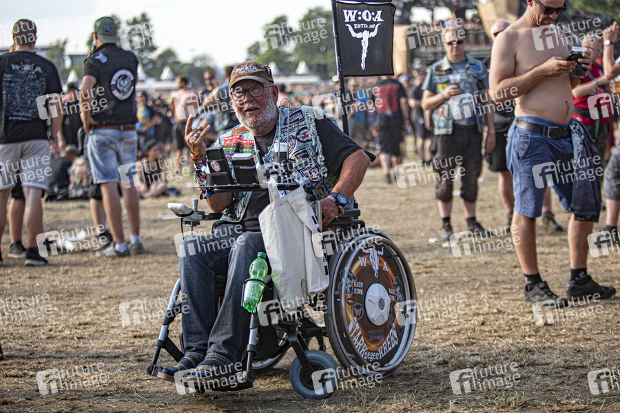 Wacken Opa Willy (reiste mit dem Rollstuhl aus Süddeutschland an und sammelte Spenden gegen Krebs) auf dem 30. Wacken Open Air Festival - W:O:A 2019. Wacken, 01.08.2019