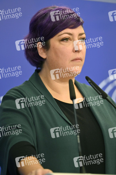 Eider Gardiazabal Rubial bei einer Pressekonferenz zum REPowerEU-Kapitel in Aufbau- und Resilienzplänen im Europäischen Parlament. Brüssel, 10.11.2022