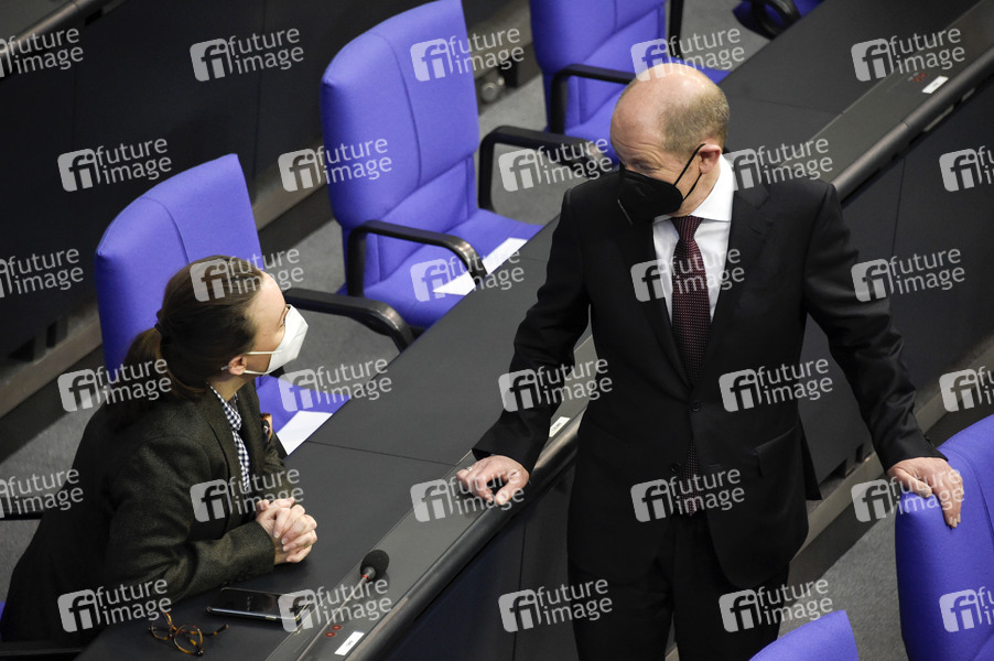 Michelle Müntefering und Olaf Scholz in der 212. Sitzung des Deutschen Bundestages im Reichstagsgebäude. Berlin, 25.02.2021