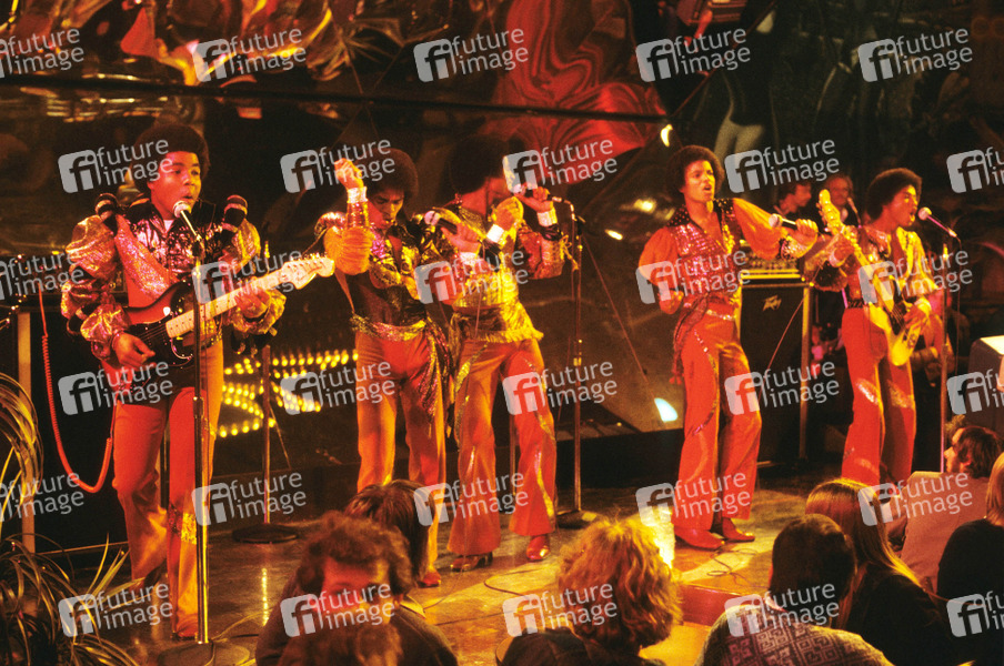 The Jacksons bei einer TV-Aufzeichnung im Musikladen in Bremen (Michael Jackson, Jackie Jackson, Tito Jackson, Marlon Jackson, Jermaine Jackson)