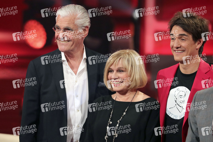 Sky du Mont, Mary Roos und Matze Knop bei der Aufzeichnung der ARD-Unterhaltungsshow 'Verstehen Sie Spass?' in den Bavaria Studios. Geiselgasteig bei München, 03.04.2019