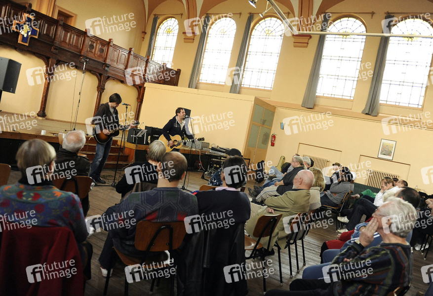 Michy Reincke mit Musiker Stephan Gade und der Insassen/Gefängnis-Band beim 'Jam in Jail – unplugged & live in Santa Fu', eine Benefizkonzertreihe für die Insassen der Justizvollzugsanstalt Hamburg-Fuhlsbuettel