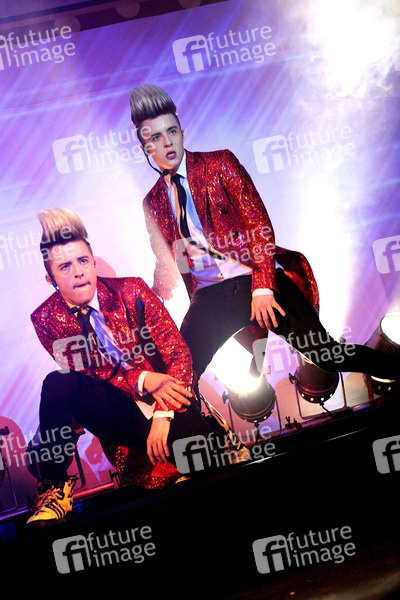 Jedward, bestehend aus den Zwillingen John Paul Henry Daniel Richard Grimes und Edward Peter Anthony Kevin Patrick Grimes, bei einem Konzert in der Großen Freiheit 36, Hamburg