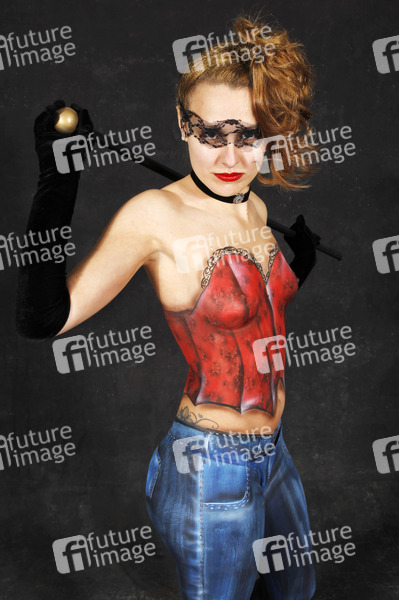 Model Caro als Jeans Girl Photoshooting zum 20 jährigen Künstlerjubiläum vom Bodypaint-Künstler Jörg Düsterwald im Photohaus. Hameln, 09.11.2013
