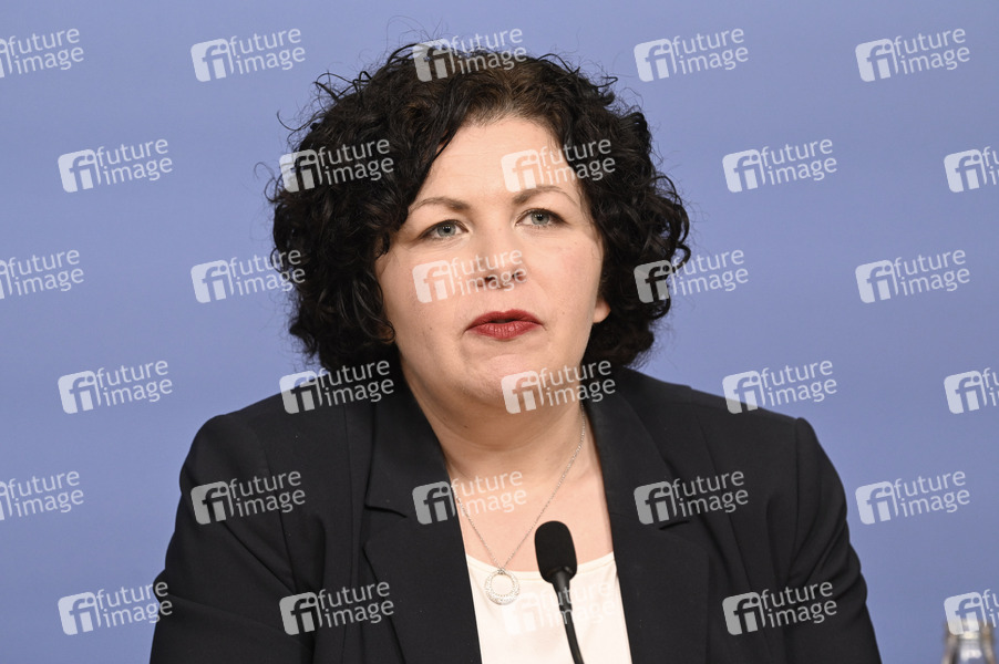 Amira Mohamed Ali bei der Pressekonferenz zur Europawahl 2024 im Haus der Bundespressekonferenz. Berlin, 10.06.2024