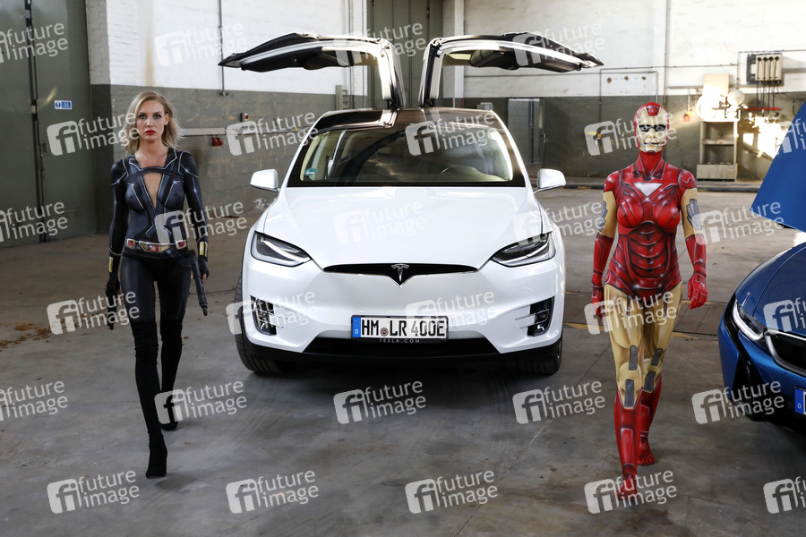 Projekt Farbkörper, Cosplay, Cosplayer, Bodypainting, nackt, Body-Painting, Make-up, Latexappliaktionen, Latexteile, Maskenbildnerei, Maskenbildner Körperkunst, Körperfarben, Farbe, Bemalung, Kunst, Malerei, Superheld, Superheldin, Comics, Comicfigur, Marvel, Iron Man, Tesla Model X, Hybrid Sportwagen, Stromauto, Elektroauto, Elektrofahrzeuge, Elektromobilität, nude, unweltfreundlich, electric car, electric vehicles, electromobility, body painting, body art, superhero, super heroine, project color body, colors, colours, BMW i8