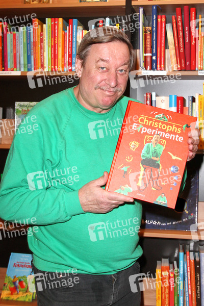 Christoph Biemann bei einer Mitmach-Lesung für Kinder aus dem Buch 'Christophs Experimente' in der Buchhandlung Heymann in Eppendorf, Hamburg
