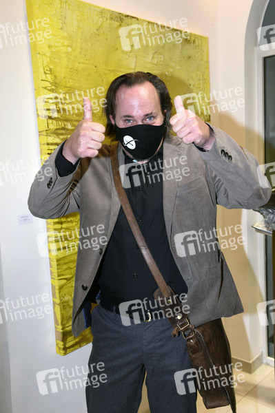 Sascha Maaz bei der Finissage der Ausstellung 'Farb-Pracht' mit Versteigerung des Werkes 'Awakening' von der Künstlerin Simone von Anhalt im Friseursalon Figaro. München, 31.10.2020