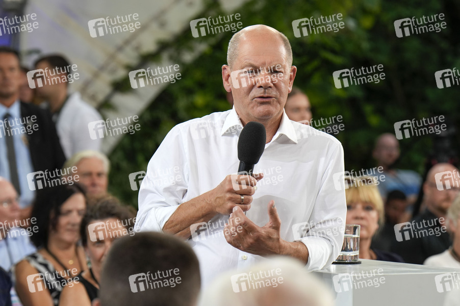 Olaf Scholz beim Kanzlergespräch mit Bürgern in der ufaFabrik. Berlin, 04.09.2024