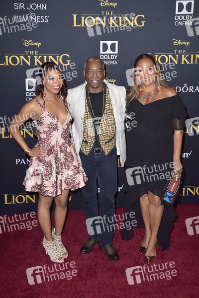 LeVar Burton mit Tocher Michaela Burton und Ehefrau Stephanie Cozart Burton bei der Weltpremiere des Kinofilms 'The Lion King / Der König der Löwen' im Dolby Theatre. Los Angeles, 09.07.2019