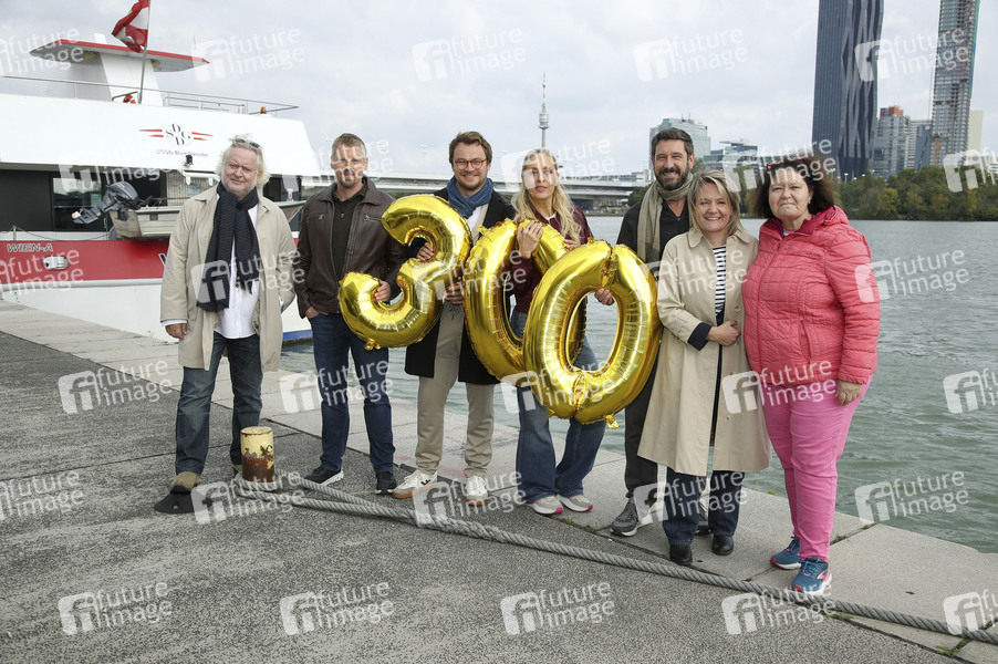 Gregor Seberg, Martin Gruber, Max Fischnaller, Lilian Klebow, Andreas Kiendl, Stefanie Groiss-Horowitz und Silvia Lambri beim Fototermin anlässlich der 300. Folge am Set der ORF TV-Serie 'SOKO Donau / SOKO Wien' am Handelskai. Wien, 02.10.2025