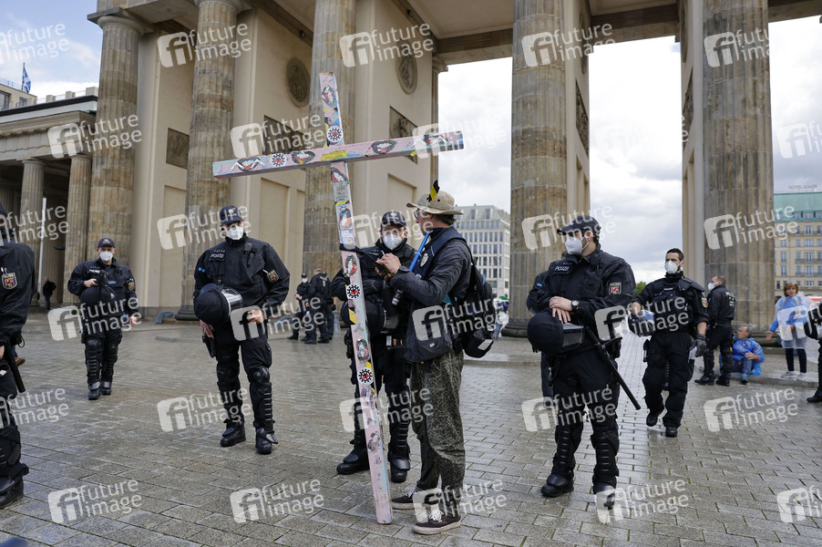 Protest, Demo, Demonstration, Corona-Maßnahmen-Kritiker, Corona-Hygieneregeln, Distanz, Mund-Nasen-Schutz, Protestierende, Demonstranten, Polizei, Polizisten, Polizeieinsatz, Gegner der Corona-Maßnahmen, Infektionsschutzgesetz, Corona-Notbremse, Eindämmung der dritten Pandemiewelle, Coronaleugner, Teilnehmer, Corona-Regeln, Pandemie, Corona-Demo, Coronademo, Querdenker, Querdenken, Gegendemonstranten, Corona-Leugner, Demo gegen Lockdown, Coronasdemo, Corona-Demo