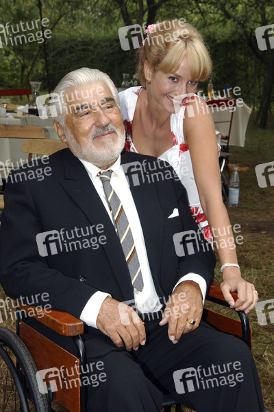 Mario Adorf und Lara Joy Körner beim Fototermin am Set des ARD-Fernsehfilms 'Vera - Die Frau des Sizilianers'. Meerbusch, 09.01.2003