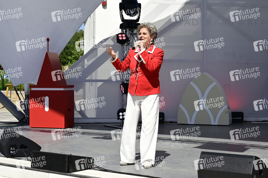 Dagmar Frederic bei der Sommergarten-Show auf der Freilichtbühne im Stadtpark. Beelitz, 12.05.2024