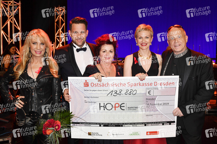 Petra Zieger, Matthias Killing, Viola Klein, Karen Heinrichs und Stefan Hippler bei der 14. Hope Gala 2019 im Schauspielhaus. Dresden, 16.11.2019
